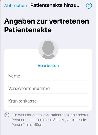 Die zu vertretende Person hat sich für seine ePA-App registriert