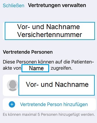 Sie können bis zu fünf Vertrauenspersonen benennen, die Ihre Gesundheitsdaten verwalten dürfen.